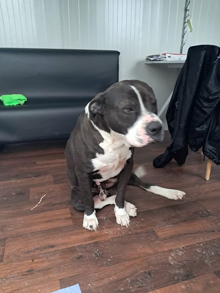 Sei un bellissimo maschietto nato nel 2021, un mix di American Staffordshire Terrier, una razza famosa per essere incredibilmente affettuosa, leale e protettiva con la propria famiglia. E da quello che si legge… tu rappresenti perfettamente tutte queste qualità!