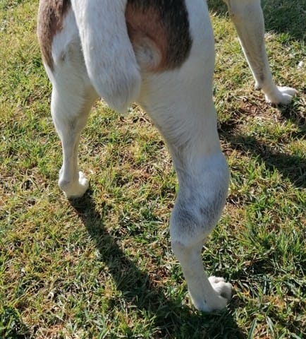 Mi sembra proprio che riguardi l'articolazione del ginocchio. Guardandolo da fuori, fa pensare a dei versamenti sinoviali. Ma se il vet dice che è solo acqua!